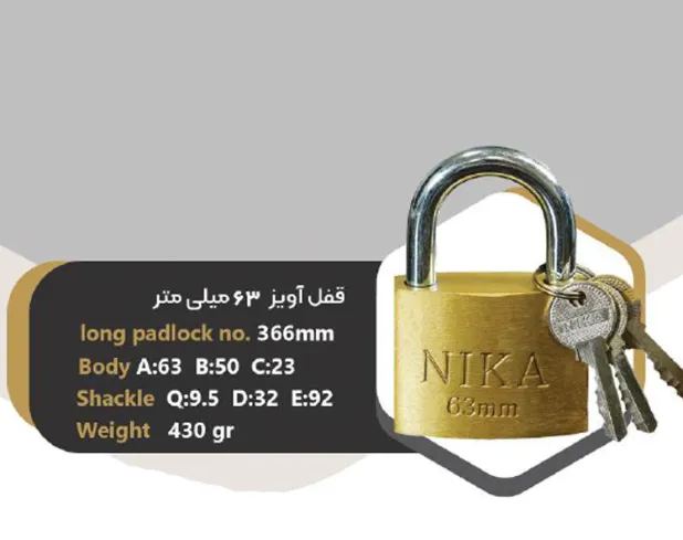 قیمت قفل آویز 63 میلی متری نیکا و مکانیزم 6 کد امنیتی
