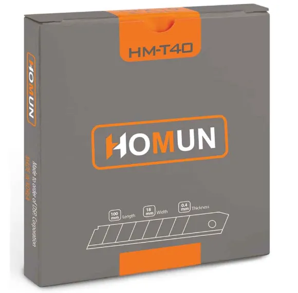 در زمان بررسی قیمت تیغ کاتر بزرگ هومان ، یکی از سوالات پرتکرار خریداران این است که تفاوت مدل T40 با سایر مدل ها در چیست و آیا این کد به معنای تیغ کوچک است؟ در پاسخ باید گفت که این محصول دارای عرض استاندارد ۱۸ میلی متری است و تنها تفاوت آن با مدل های دیگر در ضخامت 0/4 میلی متری آن خلاصه می شود. این ضخامت کمتر، آن را به یکی از مناسب ترین انتخاب ها جهت برش های منحنی روی چرم، طلق، پارچه و کاغذ تبدیل می کند. هر بسته از این کالا دارای ۱۰ عدد تیغ یدک است که از نظر اقتصادی ارزش خرید آن را بالا می برد. همچنین وجود خطوط برش مورب روی بدنه هر تیغ به شما اجازه می دهد تا در صورت کند شدن نوک آن، با شکستن بند اول، مجددا یک لبه کاملا تیز و جدید در اختیار داشته باشید.