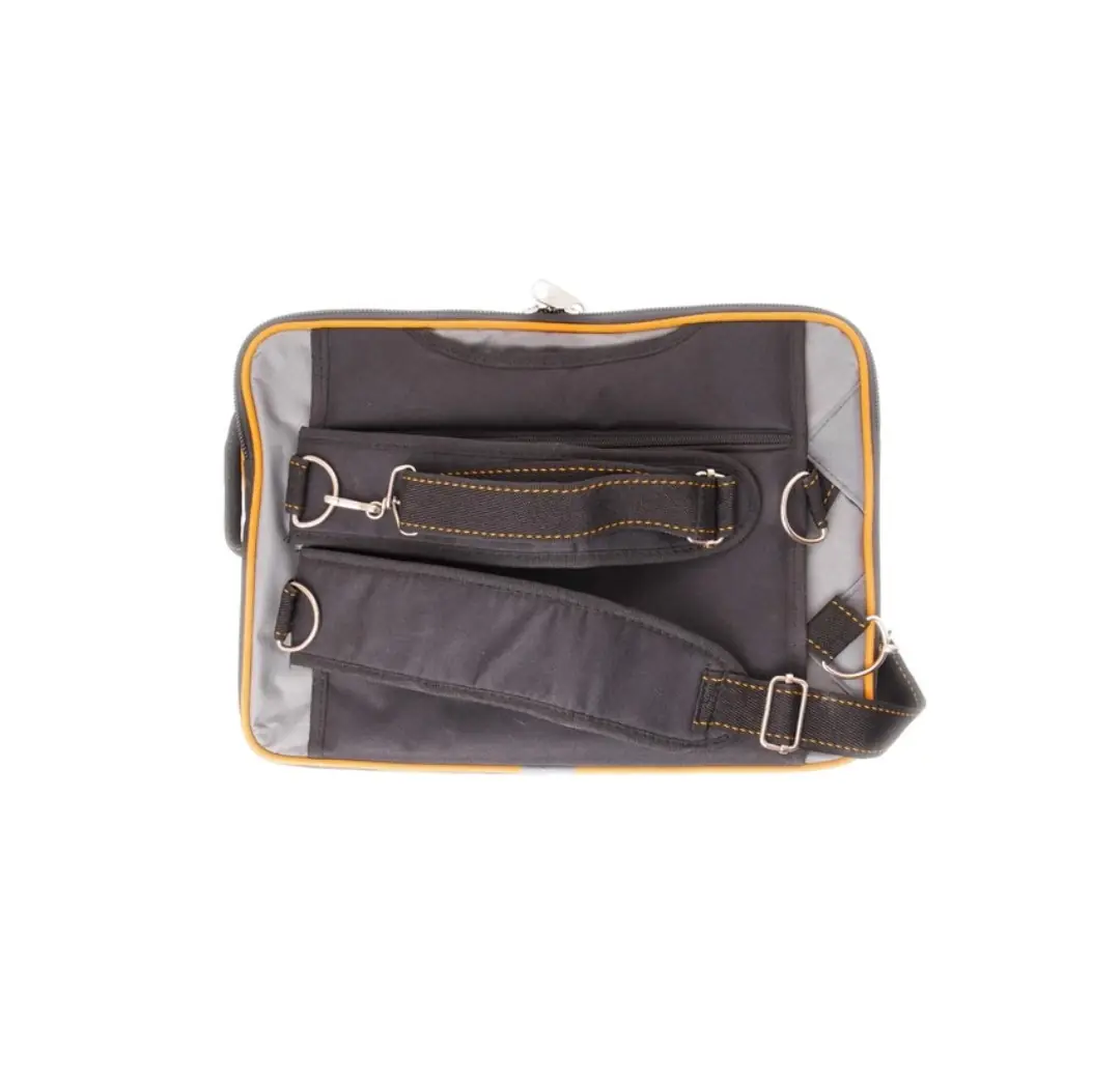 ترکیب نیاز به حمل تجهیزات الکترونیکی مانند لپ تاپ و ابزار آلات دستی، دغدغه بسیاری از مهندسین و تکنسین های شبکه است. خرید آنلاین کیف ابزار لپ تاپی 43 سانت لایت مدل LB-4313 به عنوان یکی از راهکار های کارآمد جهت رفع این نیاز پیشنهاد می شود. این محصول از پارچه برزنت تقویت شده جودون با لایه پشتی پی وی سی ساخته شده است که مقاومت بسیار بالایی در برابر نفوذ رطوبت و آب دارد. ابعاد دقیق این کالا شامل ۴۳ سانتی متر طول، ۱۳ سانتی متر عرض (عمق) و ۳۰ سانتی متر ارتفاع می باشد. طراحی این مدل کاملا شبیه به کیف های اداری است تا کاربر بتواند با ظاهری رسمی در محیط های کاری حاضر شود، در حالی که در داخل آن فضایی کاملا صنعتی و تفکیک شده جهت قرار دادن تجهیزات وجود دارد.