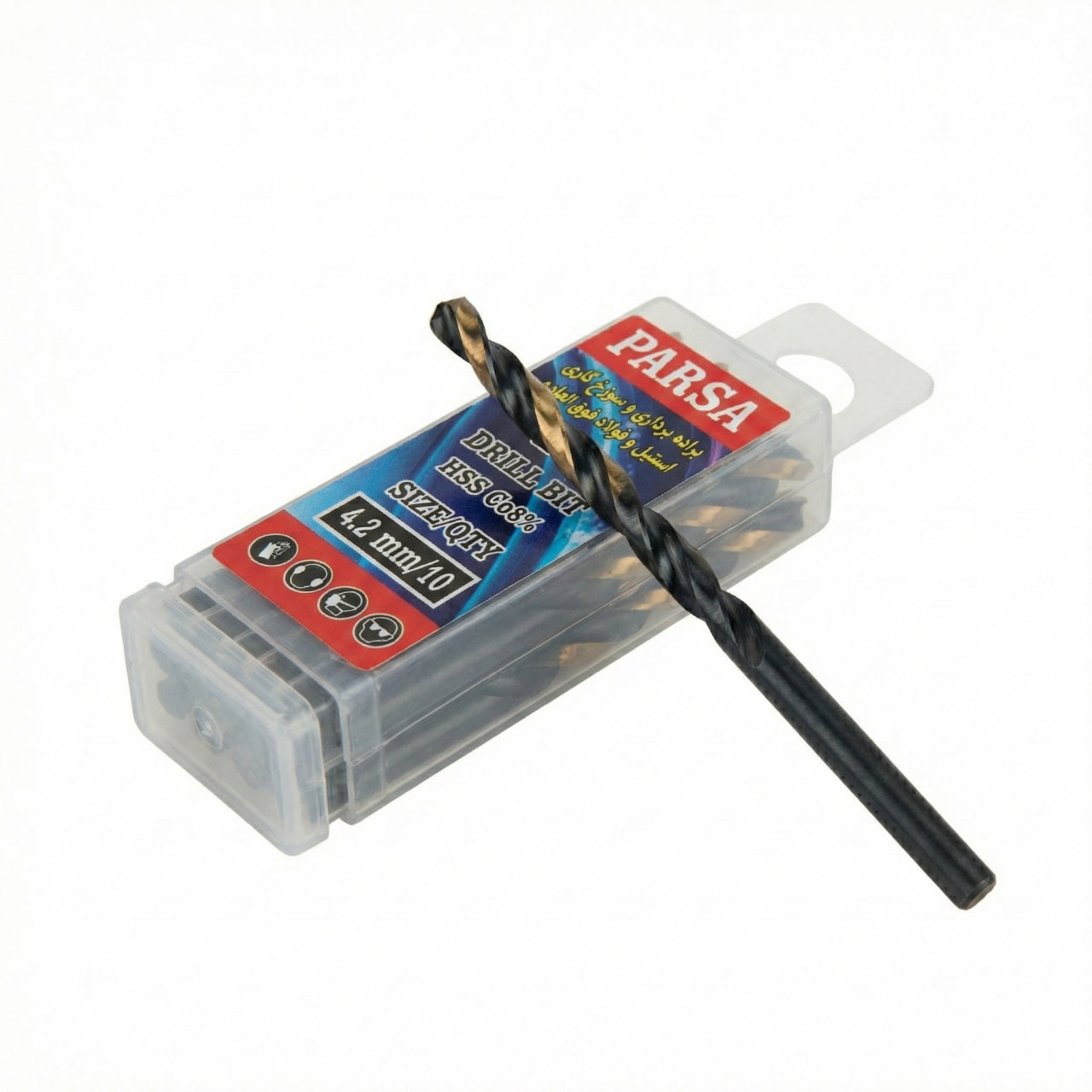 بررسی قیمت مته HSS Co8% سایز 4.2 میلی متر به ما نشان می دهد که این کالا یک سرمایه گذاری هوشمندانه برای جلوگیری از اتلاف وقت در پروژه های صنعتی است. این قطعات در یک قوطی پلاستیکی شفاف مکعب مستطیل که دارای یک گیره آویز یکپارچه سفید رنگ در بالا و درپوش شفاف در پایین است، به صورت کاملا ایمن عرضه می شوند. بر اساس اطلاعات درج شده روی لیبل کالا (SIZE/QTY 4.2 mm/10)، این مجموعه شامل ۱۰ عدد (یا 10 عدد) مته آماده به کار است. داشتن یک بسته ۱۰ عددی از این ابزار قدرتمند، خیال شما را در شیفت های کاری طولانی کاملا راحت می کند و در صورت نیاز به تعویض، نیازی به توقف کار برای خرید مجدد قطعه نخواهید داشت.